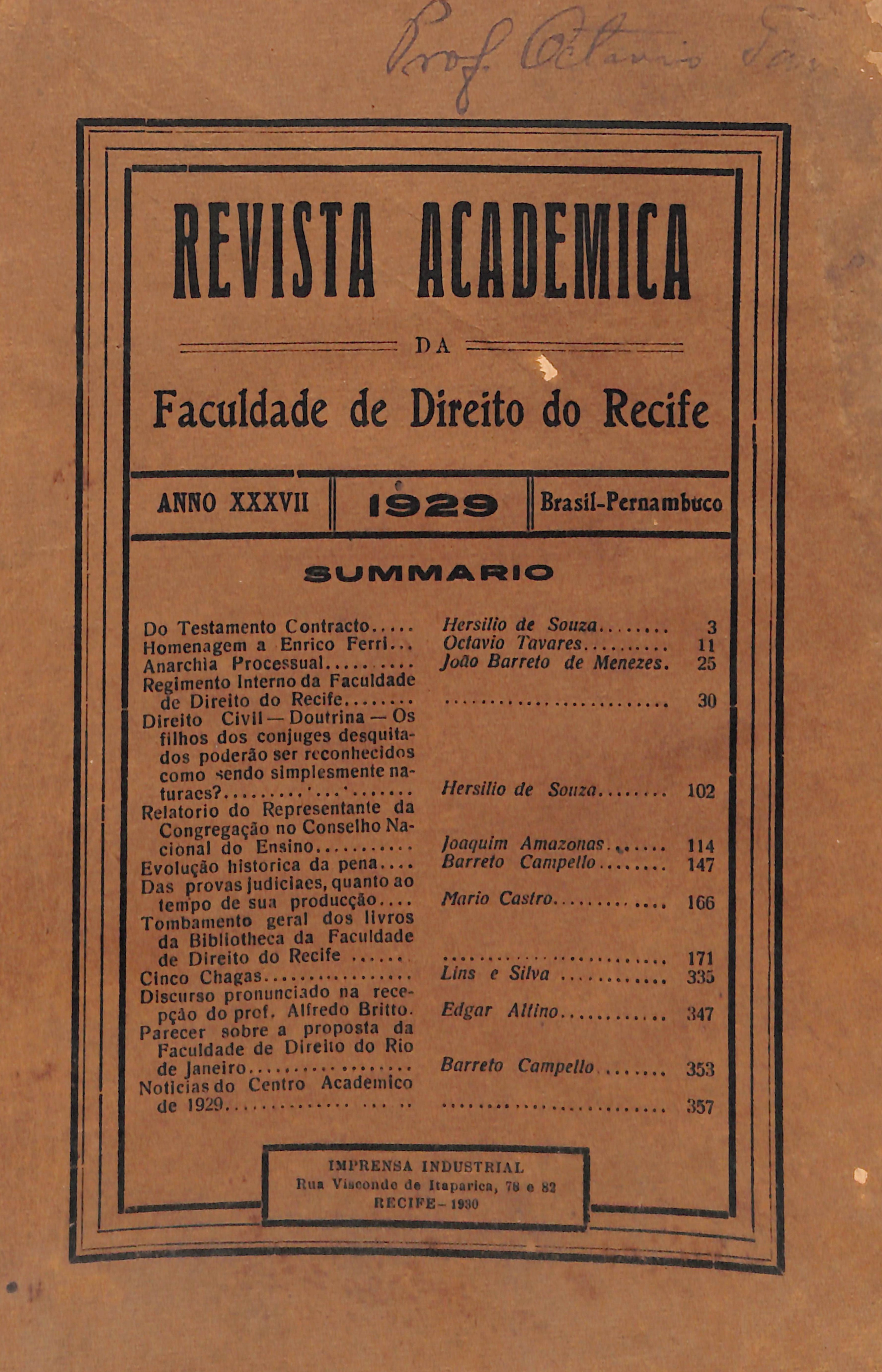 v. 37 n. 1 (1929): Revista Academica da Faculdade de Direito do Recife